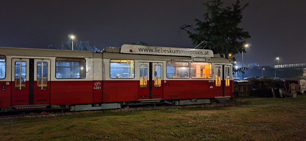 Gestartet bin ich am Karlsplatz um 18°° Uhr mit dem „M-Triebwagen 4152“ vom VEF der Remise Wien wie in dem kurzen Video zu sehen ist.