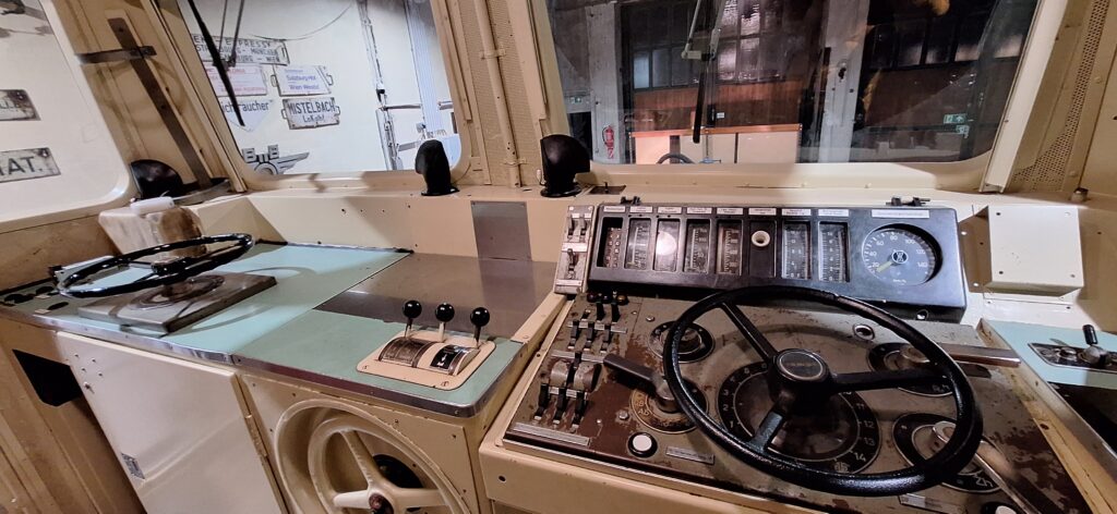 Nachdem ich bei einem „Würstelstand“ gepflegt was gefuttert habe, wollte ich eigentlich schon nach Hause fahren, als ich gegenüber auf der Ringstrasse neben den beiden Museen einen Gräf & Steyr GU230/54/69/A1. Das konnte ich mir nich entgehen lassen. Schnell rüber gelaufen und zack ab in den Bus rein, auf meinen Lieblingsplatz, ganz vorne rechts, quasi neben dem Fahrer.